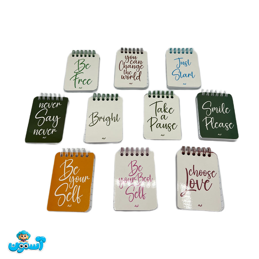 پک اقتصادی ۱۰ عددی دفترچه نوت جیبی با جلدهای انگیزشی و صحافی فنریِ بالا؛ گزینهای کاربردی و بانمک برای بستههای تشویقی مدارس و هدیههای روزمره.