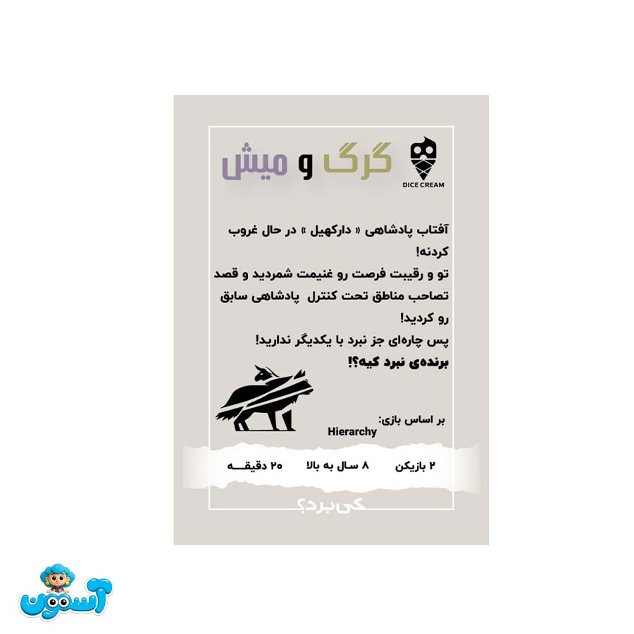 آفتاب پادشاهی «دارکهیل» رو به غروب است و شما و رقیبتان برای تصاحب قدرت روبهرو میشوید. در گرگ و میش، نبرد با «قوانین سلسلهمراتبی» پیش میرود؛ یعنی هر کارت فقط بر بعضی کارتها غلبه میکند. باید دستِ حریف را بخوانید، بلوف بزنید و در لحظهٔ درست، کارتِ کلیدی را رو کنید. تجربهای سریع، تاکتیکی و سرشار از چرخشهای غافلگیرکننده برای ۲ نفر.