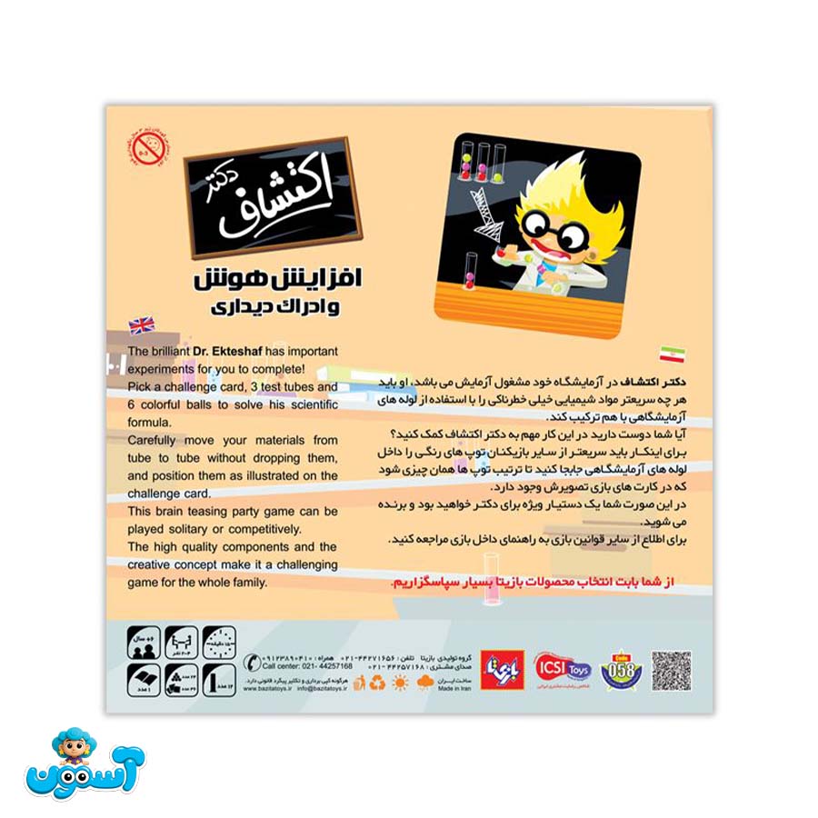 «دکتر اکتشاف ۴ نفره» یک بازی سرعتی و هیجانانگیز است که در آن باید با جابهجایی دقیق گویها بین لولهها، الگوی کارت را سریعتر از بقیه بسازید—بدون اینکه گویها را با دست لمس کنید یا از لوله بیرون بیفتند!